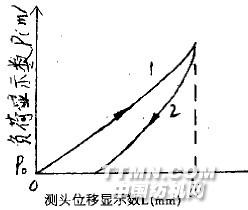 圖二 彎曲滯后曲線(三)壓縮特性測試:主要是評定織物的厚實性,膨松性和壓縮回復性。測試過程如圖四所示,將單層試樣1平放在試樣臺9上,開動電源測頭3即以定速下降,測量輕、重二種壓強時所產生的厚度差和卸負后所具有的回復量,以計算試樣的厚實性, 膨松性、和壓縮回復性。表觀厚度(即輕壓強作用下測得的厚度)大,織物手感較膨松,穩定厚度(即重壓強作用下測得的厚度)大,織物手感較厚實,壓縮彈性率大,織物在服用中豐厚性的保持能力較好。