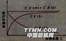 變異長(zhǎng)度曲線(紗線細(xì)度不勻與試樣片段長(zhǎng)度間關(guān)系) 測(cè)紗條細(xì)度不勻時(shí)采用方法不同,所測(cè)片段長(zhǎng)度不同,測(cè)得的重量不勻率不同。所取片段長(zhǎng)度越長(zhǎng),不勻率越小。外不勻—片段間不勻內(nèi)不勻—片段內(nèi)的不勻總不勻—整管紗的不勻 內(nèi)不勻和外不勻總是小于總不勻。片段長(zhǎng)度越長(zhǎng),外不勻越小,內(nèi)不勻越大。變異—長(zhǎng)度曲線:反映紗條的變異與紗條切斷長(zhǎng)度間關(guān)系的 曲線。反映紗條不勻結(jié)構(gòu)特征。