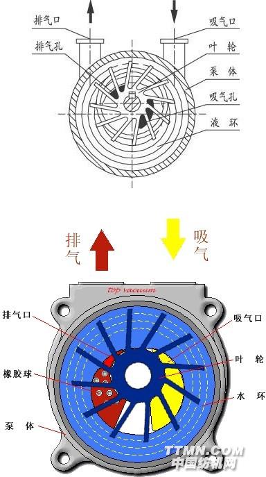 水環式真空泵(簡稱水環泵)是一種粗真空泵,它所能獲得的極限壓力,對于單級泵為2.66~9.31kPa;對于雙級泵為0.133~0.665kPa。水環泵也可用作壓縮機,它屬于低壓的壓縮機,其壓力范圍為(1~2)X105Pa表壓力(在特定的條件下)。水環泵在石油、化工、機械、礦山、輕工、造紙、動力、冶金、醫藥和食品等工業及市政與農業等部門的許多工藝過程中,如真空過濾、真空送料、真空脫氣、真空蒸發、真空濃縮和真空回潮等,得到了廣泛的應用,由于水環泵壓縮氣體的過程是等溫的,故可抽除易燃、易爆的氣體,此外還可抽除含塵,含水的氣體,因此,水環泵的應用日益增大。