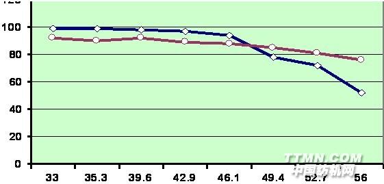但是隨著鹽度的升高COD和氨氮的去除率將會(huì)下降,如下圖所示紅線表示COD去除率,藍(lán)線表示氨氮去除率,橫坐標(biāo)為氯化鈉濃度g/l。