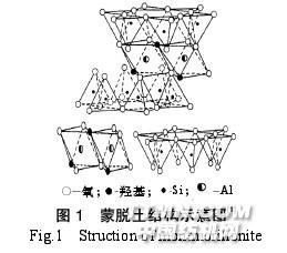 蒙脫土(MMT)是一種層狀結(jié)構(gòu)的硅酸鹽,在工業(yè)中應(yīng)用 極廣。蒙脫土由于其獨(dú)特的結(jié)構(gòu)優(yōu)勢(shì),來(lái)源易,價(jià)格低而受到 大家的青睞和重視,蒙脫土屬于2?1型結(jié)構(gòu)的具有膨脹性的含 水鋁硅酸鹽,其結(jié)構(gòu)單元是由硅氧四面體層中夾雜一個(gè)鋁氧八 面體層構(gòu)成的,如圖1[1]。