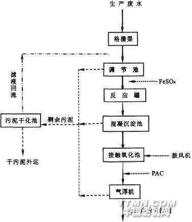 2 工程概況某制革廠是一家以豬皮、羊皮為原料的制革企業, 采用常規鉻鞣工藝。設計流量Q 為200 m3/d、CODcr 為2800 mg/L、SS 為300 mg/L、S2- 為40 mg/L、Cr3+為15 mg/L, 處理后執行GB8978- 1996Ⅰ級標準。該工程已達標驗收, 至今平穩運行。2.1 廢水設計處理工藝流程