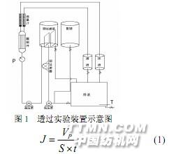 1 實(shí)驗(yàn)部分1.1 實(shí)驗(yàn)材料重鉻酸鉀(分析純) ,天津市科密歐化學(xué)試劑開(kāi)發(fā)中心;硝酸鉻(分析純) ,北京五七六零一化工廠;去離子水;納濾膜由上海亞?wèn)|核級(jí)樹(shù)脂有限公司提供。1.2 實(shí)驗(yàn)裝置與實(shí)驗(yàn)方法實(shí)驗(yàn)裝置由浙江中控科教儀器設(shè)備有限公司生產(chǎn)。實(shí)驗(yàn)研究了納濾膜對(duì)不同價(jià)態(tài)鉻離子的截留性能,納濾膜為復(fù)合材質(zhì),表層材料為聚芳香酰胺,支撐層為聚砜,膜面積為 0.4 m2。透過(guò)實(shí)驗(yàn)裝置如圖 1 所示,實(shí)驗(yàn)過(guò)程中控制溫度恒定為25 ℃,操作壓力為 0.30~0.55 MPa,溶液中鉻離子濃度采用島津 A-6300原子吸收分光光度計(jì) (日本島津公司)進(jìn)行檢測(cè)。1.3 膜通量和截留率膜通量(J)是用來(lái)表征膜組件工作能力的重要參數(shù),計(jì)算公式如下: