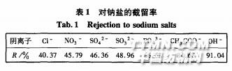2結果與討論2.1對陰離子的選擇性2.1.1陽離子為Na時的截留情況表1為納濾膜對不同陰離子的鈉鹽的截留情況。.jpg)