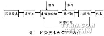 該企業(yè)各車間的印染廢水在調(diào)節(jié)池混合降溫后,經(jīng)泵提升從水解酸化池上部進(jìn)水,但是由于進(jìn)水無(wú)法與下部的污泥混合,所以加入微量曝氣起到攪拌作用,使得泥水充分接觸。調(diào)節(jié)池中有組合填料,水解酸化池中的HRT為12~15h,MLSS為7.3~9.5g/L,污泥沉降比(SV30)約為93%,采用頂部溢流出水,由于水解酸化池的M