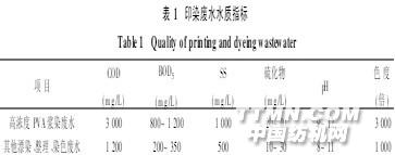 1 工程概況1·1 水質(zhì)情況江蘇某染織實(shí)業(yè)有限公司是一家從事紗線到成 衣一條龍生產(chǎn)線的企業(yè),設(shè)計(jì)規(guī)模為5 000 t/d,其 中包括800 t/d的漿染廢水和4 200 t/d的其他廢 水。在其排污口取樣多次,監(jiān)測(cè)分析印染廢水水質(zhì) 情況,詳見表1。其廢水的特點(diǎn)是:①污水中含大量染料分子, 可生化降解性差;②各股污水濃度及水量差異大;③ 染織廢水的水溫較高,通常為40℃左右,夏季達(dá)到 40℃以上,對(duì)生物處理不利;④色度變化大,原水pH 值偏堿。