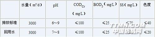 2、 常熟鴿球印染有限公司8000t/d印染廢水處理工程 常熟鴿球印染有限公司由六家印染企業組合而成,原位于常熟市區。隨城市規劃和生產發展需要,該公司整體搬遷至常熟市大義鎮工業開發區。 該公司主要生產純棉和滌棉混紡織物,年產量約9000萬米。生產過程中主要用分散染料和活性染料及有關助劑。廢水排放量近6000m3/d。搬遷后廢水處理工程屬于三同時項目。 受該公司委托,南京嘉慶科技實業有限公司為其設計污水處理方案。經本工程處理后的水質達到[GB4287—92]《紡織染整工業水污染物排放標準》的一級標準,其中50%(3000m3/d)排放,另有50%(3000m3/d)回用于生產工藝、冷卻水補充水及綠化等。 (1) 設計規模 廢水正常排放量接近6000m3/d,考慮生產高峰期排水量,業主提出該廢水系統的最大處理能力為8000m3/d。 (2) 設計進水水質 根據常熟鴿球印染有限公司提供的有關水質數據見表3。 表3 設計進水水質