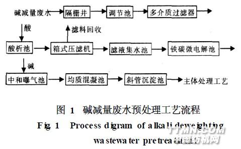 2 預處理工藝試驗2. 1 酸析試驗 對苯二甲酸在堿性溶液中呈溶解性,而在酸性溶液中析出難溶性的對苯二甲酸沉淀物。由于廢水中對苯二甲酸含量高,有較大的回收價值,若不進行酸析回收對苯二甲酸而直接進行生化處理,不僅處理效果不好,而且浪費大量可回收的對苯二甲酸,在可持續發展觀念中體現不出循環經濟的理念。通過對堿減量廢水的預處理、生化處理、后處理的各種方案作了大量探索試驗表明,先進行酸析處理再生化處理不僅更經濟,而且更可能使廢水達標排放。通過試驗發現,控制不同的pH值,對苯二甲酸的析出量也不同。因此,要獲得良好的析出效果,關鍵在于控制好酸析時的pH 值。由于原水中雜質多、成分復雜,為提高回收的TA (對苯二甲酸)純度,采用多介質過濾器進行預處理,先去除水中雜質,再進行后續酸析處理。試驗采用硫酸對.jpg)