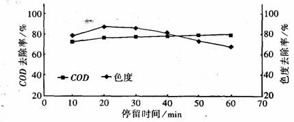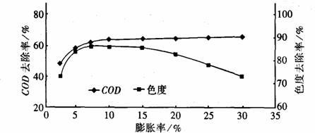 | PH | 停留時間min | 膨脹率 | 脫色率% | COD去除率% |