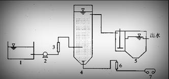 1:調(diào)節(jié)池 2:原水泵 3:流量計(jì) 4WL40A2H反應(yīng)器 5:過濾池