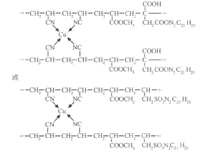 數(shù)生長期時(shí)用于實(shí)驗(yàn)。1.1.2 抗菌防臭纖維織物抗菌防臭纖維織物是江蘇AB集團(tuán)采用原中國紡織大學(xué)陳美華等開發(fā)的一種功能性的纖維織物,該纖維織物以腈綸纖維為第一單體,在腈綸纖維上復(fù)合亞銅離子,并以衣康酸或丙烯磺酸納為第三單體,在其上復(fù)合堿性綠基團(tuán)。由于銅離子和堿性綠基團(tuán)均具有很強(qiáng)的抗菌、殺菌功能,其對(duì)金黃色葡萄球菌、大腸桿菌、枯草桿菌、白色葡萄球菌和白色念球菌等原核及真核細(xì)菌均有較強(qiáng)殺滅能力。其化學(xué)結(jié)構(gòu):