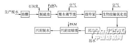 圖1 上海針織五廠廢水處理工藝流程