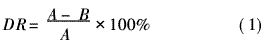 2.1.2 廢水脫色率的測定在150mL燒杯中加入100mL染料廢水和一定體積的液態M-127,以200r/min攪拌1min,再以60r/min攪拌3min,靜置15min,用吸管吸取上清液于722型分光光度計196nm處測定吸光度,以不加M-127的空白樣品為對照[6]。脫色率(DR)用式(1)表示。
