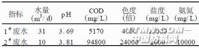 | 表1 廢水水質(zhì)特征 |