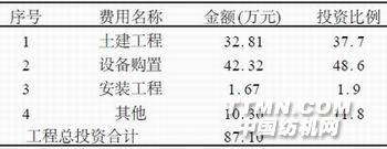 (1) 該廢水處理站工程總投資87. 1 萬元,具體分配見表3 。