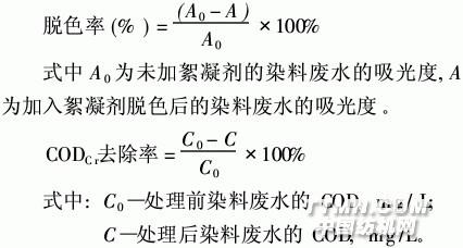 前言 近些年來隨著化纖織物的發(fā)展,仿真絲的興起和印染整理技術(shù)的進(jìn)步,染料品種在日益增多的同 時,功能上亦朝著抗光解、抗氧化、抗生物氧化的方向發(fā)展,人工合成染料種類越來越多,結(jié)構(gòu)日趨復(fù) 雜,性能日趨穩(wěn)定,當(dāng)前染料分子主要是以芳烴和雜環(huán)化合物為母體,并帶有顯色基團(tuán)和極性基團(tuán), 難以脫色降解,從而使染料廢水處理難度加大。含水溶性染料,如活性染料、酸性染料等的廢水很難使用目前成熟的廢水處理工藝去除。因此,研究對這類染料有特效脫色功能的脫色劑是含染料廢水處理的一個重要方向[1-3]。 現(xiàn)有的脫色劑對于活性染料、分散染料等脫色效果較好,但對于酸性染料等水溶性好的染料脫色效果欠佳。染料大多為陰離子型,對可溶性染料, 陽離子型季銨鹽作為脫色劑是較好的選擇,且對其 它染料廢水的處理效果也較好。本文以陽離子型季銨鹽類絮凝劑BWD-01為脫色劑,處理不同類 型染料廢水,考察了廢水的脫色率以及COD去除率。配置模擬染料廢水所用的染料包括:毛皮藍(lán)MN-DR、毛尖藍(lán)TL-MV、毛皮紅BBA。
