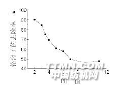 3.3 溶液pH 值對去除率的影響
