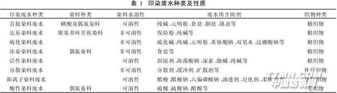熟悉生產工藝是進行工程設計的前提和基礎。因染色工業門類較多、染料及助劑種類多樣,其治理的工藝設計不盡相同。一般而言,印染廢水治理工程設計時,對生產工藝和廢水來源應了解:生產工藝流程、印染織物的種類、染料及助劑的種類、生產工序中各排水節點的排水水質和水量。1 印染廢水種類印染廢水實際是一大類廢水,印染種類多,情況復雜,就染料品種就有活性染料、直接染料、還原染料(士林染料)、硫化染料、冰染染料(納夫妥染料)、分散染料、陽離子染料、酸性染料等;就染色產品又可分為棉、化纖、毛、麻、絲綢、針織等。各類廢水性質有一定差別(見表1)。.jpg)