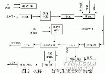 1 問題的提出按“三同時”原則配套安裝了處理印染生產廢水的污水處理站,其核心設備為好氧生化(活性污泥)SBR。流程如圖 1 所示。