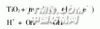 紡織印染染色廢水,水量大,色度高,成分復(fù)雜,廢水中含有染料、助劑、油劑、酸堿、纖維雜質(zhì)及無(wú)機(jī)鹽等,隨著染料工業(yè)的發(fā)展,大量新型印染助劑、染料、漿料等難以生物降解的有機(jī)物在印染行業(yè)中的廣泛應(yīng)用,致使印染廢水中有機(jī)物成分越來(lái)越復(fù)雜多變,其BOD5/CODCr比值下降,色度高,可生化性降低。消除印染廢水中高色度和高CODCr值,已成為長(zhǎng)期困擾印染廢水治理的兩個(gè)關(guān)鍵問(wèn)題[1]。目前國(guó)內(nèi)處理印染廢水多以生化法為主,但存在處理效果不佳、CODCr和色度去除困難等缺點(diǎn)[2]。 近年來(lái),隨著光化學(xué)及技術(shù)的發(fā)展和進(jìn)步,利用TiO2氧化物多相光催化消除環(huán)境中的各種污染物的研究已引起人們的廣泛關(guān)注。我國(guó)是鈦礦儲(chǔ)量大國(guó),具有豐富的鈦資源。TiO2以其廉價(jià)無(wú)毒、蝕性小、無(wú)二次污染等諸多優(yōu)點(diǎn),成為多相光催化領(lǐng)域的熱點(diǎn),并被認(rèn)為是當(dāng)前最具有開發(fā)前景的綠色環(huán)保型光催化劑[3],已廣泛用于處理有機(jī)污染物[4,5]。但該方法目前主要處于實(shí)驗(yàn)室試驗(yàn)階段,用該法處理實(shí)際染料廢水的研究不多[6,7]。本文探究了TiO2光催化劑在實(shí)際印染廢水處理中的應(yīng)用效果及其影響因素,為處理實(shí)際的印染廢水提供一種高效且經(jīng)濟(jì)可行的方法。1 基本原理[8] 當(dāng)能量相當(dāng)于TiO2禁帶寬度的光照射到催化劑表面時(shí),就會(huì)激發(fā)半導(dǎo)體內(nèi)的電子從價(jià)帶躍遷至導(dǎo)帶,形成具有很強(qiáng)活性的電子一空穴對(duì),并進(jìn)一步誘導(dǎo)一系列氧化還原反應(yīng)的進(jìn)行。光生空穴具有很強(qiáng)的得電子的能力,可與催化劑表面吸附的OH-和H2O發(fā)生反應(yīng)生成羥基自由基。