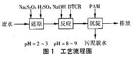 3.1 電鍍廠廢水處理 運行條件及處理結果分別見表1、2,處理工藝見圖1。