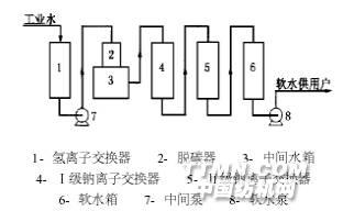 圖1 二級鈉離子交換軟化水處理工藝流程圖