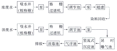 濃淡廢水分別處理,濃廢水經超濾回收靛藍染料后,有機物濃度降低,減輕后續處理構筑物負荷,提高出水水質。
