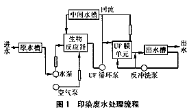 膜生物反應器由膜分離系統和生物反應器兩部分組成,其中膜分離系統主要起截留作用,而生物反應器對水中有機污染物的去除起著決定性的作用,因而研究與膜系統匹配的生物反應器的類型、運行條件對提高膜生物反應器的處理效果和擴大其適用范圍具有十分重要的意義。 作者著重研究了采用分離式膜生物反應器處理印染廢水時生物反應器的類型選擇及其對處理效果的影響,其中生物反應器采用兩種不同流態的好氧生物接觸氧化形式:一種是上流式接觸氧化柱,內裝自制的凹凸棒填料;另一種為接觸氧化槽,內裝彈性立體填料。