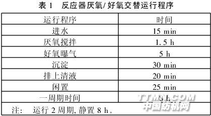 2試驗結果與討論 反應器采用的是厭氧/好氧交替運行具體方式見表1。