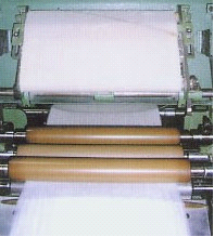 (2)四上四下附導(dǎo)向輥、壓力棒雙區(qū)曲線牽伸: 國產(chǎn)FA311型并條機(jī)牽伸形式為四上四下附導(dǎo)向輥、壓力棒雙區(qū)曲線牽伸。這種牽伸形式的特點(diǎn)是既有雙區(qū)牽伸和曲線牽伸的優(yōu)點(diǎn),又帶有壓力棒,是一種新型曲線牽伸。與三上三下壓力棒式的新型曲線牽伸結(jié)構(gòu)相比,突出的特點(diǎn)是中區(qū)的牽伸倍數(shù)設(shè)計,為接近于1的略有張力的固定牽伸(E=1.018)。這種設(shè)置改善了前區(qū)的后膠輥和后區(qū)的前膠輥的工作條件,使前區(qū)的后膠輥主要起握持作用,后區(qū)的前膠輥主要起牽伸作用,改善了牽伸過程中的受力狀態(tài)。因此,在相同的牽伸系統(tǒng)制造精度條件下,對須條可獲得較好的綜合握持效果,利于穩(wěn)定條干質(zhì)量。另一方面,須條經(jīng)后區(qū)牽伸后,進(jìn)入牽伸倍數(shù)近于1的中區(qū),可起穩(wěn)定作用,給進(jìn)入更大倍數(shù)的前區(qū)牽伸做好準(zhǔn)備。這種牽伸系統(tǒng)可適紡纖維長度為20~75mm,通常情況下,適紡60mm以下纖維。如紡60~75mm纖維時,要拆除第三對羅拉,改為三上三下附導(dǎo)向輥壓力棒式連續(xù)牽伸。