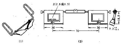 皮圈銷的作用是固定膠圈位置,把上、下膠圈引至前鉗口,并在膠圈銷處形成彈性鉗口。FA506型細紗機采用彈性擺動上銷和T形下銷,如圖7—2—3所示。下銷為6錠一根,固裝于下羅拉座上,在張力輥的彈簧作用下,與下部張力輥一起支撐下膠圈,使其呈緊張狀態。上銷為雙聯葉片狀,用于支撐上膠圈,其上端可繞小鐵輥中心靈活擺動,借助小鐵輥中心處片簧的作用給上銷施加一定的起始壓力,使上銷始終壓向下銷。上銷上裝有尼龍隔距塊,使上、下銷間保持一定的隔距,通常稱原始隔距。