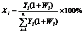 設有n種纖維混紡,第i種纖維的實際回潮率為Wi,干重混紡比為Yi,則兩種纖維的濕重混紡比Xi可用下式計算: