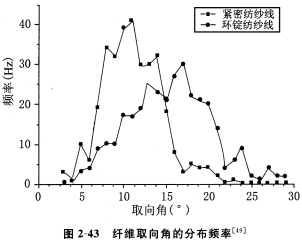 圖2—43和表2—9所示為緊密紡紗線和環錠紗的纖維取向度。對于緊密紡紗線