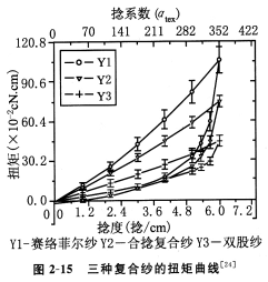 吳等[24-25]在室溫和熱定形溫度下,研究了由滌綸長絲和毛/滌短纖制成的賽絡菲爾復合紗、合捻復合紗以及雙股短纖紗的扭轉性能和扭矩松弛行為,分析比較了復合紗和