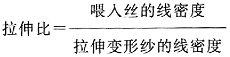 同時(shí)型拉伸變形加工中,喂入羅拉與,中間羅拉(二級(jí)加熱器機(jī)型)的速度比或喂入羅拉與輸出羅拉(一級(jí)加熱器機(jī)型)的速度比決定了拉伸倍數(shù)。可用下式計(jì)算起始拉伸比: