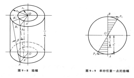 為了簡要說明真捻加捻的實質,現取紗條一小段纖維l作分析,如圖9-4所示。