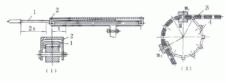 如圖2-22所示為單劍桿引緯和雙劍桿引緯示意圖。