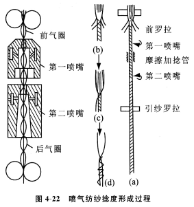 圖4—22為噴氣紡紗的捻度形成過程。