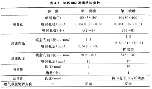 ,以保證旋轉(zhuǎn)渦流的完整。新的噴嘴設(shè)計中,第二噴嘴后也有開纖管和尾部出氣管,都設(shè)計成分離式,可以更換。 <