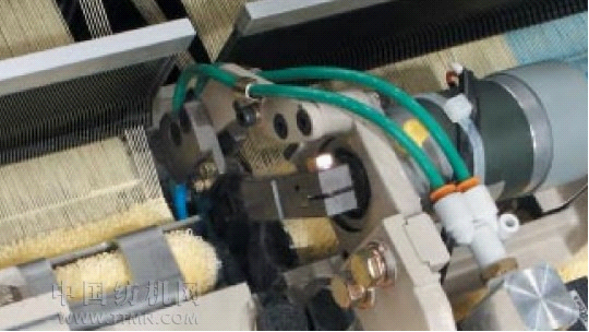 經紗張力的設定,單紗張力在16~26cN。由于織口游動大,宜適當提高后梁10-20mm,經停架5~10mm。邊撐桿高度要比一般細布高1mm。為防止打緯時后梁擺幅過大,后梁張力臂在緩沖塊內的活動動程為0~2mm。卷取輥表面應采用金屬熔噴處理,以防卷布滑移翠過大,出現織口后退,引起斷邊及邊撐疵。邊撐使用單列48環刺輥,刺輥為變刺、高細刺或特細刺。主噴嘴啟噴時間與儲緯器停緯銷開啟時間要同步,否則會造成引緯的失敗。為此,在織機上采用了高后梁、大張力、早開口、小開口、低壓力等工藝配置,具體如下: