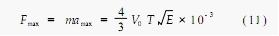 當緯紗加速度達到最大值時,緯紗所受的張力也達到最大,于是可求得: