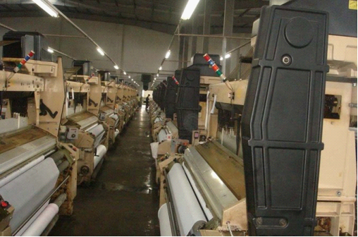 噴水織機是采用噴射水柱牽引緯紗穿越梭口的無梭織機。噴水引緯對緯紗的摩擦牽引力比噴氣引緯大,擴散性小,適應表面光滑的合成纖維、玻璃纖維等長絲引緯的需要。同時可以增加合纖的導電性能,有效地克服織造中的靜電。此外噴射緯紗消耗的能量較少,噪音最低。