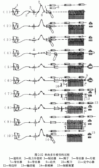 單向多片梭引緯過程如圖2-32所示。