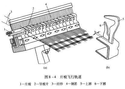 導(dǎo)梭片插入或退出梭口引起經(jīng)紗磨損,新型的導(dǎo)梭片已由原來上、下唇相對改為上、下唇錯(cuò)開6距離,如圖8—4(b)所示,使集中的經(jīng)紗磨損得到分散,這有利于高密織物和不耐磨經(jīng)紗的織造。