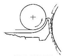 ⒉自由分梳 自由分梳作用發生在刺輥與分梳板之間,當刺輥帶著纖維經過分梳板時,纖維尾端從鋸齒間滑過,使位于刺輥纖維層表面,在握持分梳時受到較弱梳理作用的纖維束、小棉塊得到分梳,從而減少了進入錫林蓋板工作區的纖維束和棉束長度,提高了纖維的分離程度,為錫林蓋板工作區的細致分梳創造了有利條件,所以該分梳也被稱為預分梳。