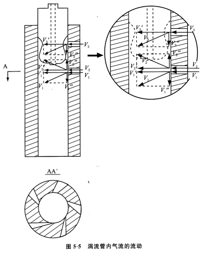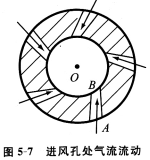 圖5—7所示為渦流管內(nèi)進(jìn)風(fēng)孔的氣流流動。
