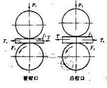 圖5-3-10須條在兩對簡單羅拉構成的牽伸鉗口下的受力分析。