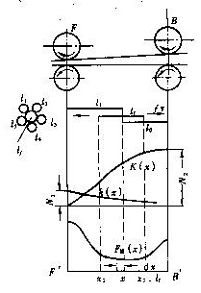 如圖5-3-9所示,牽伸區內任意一根長度為lf的浮游纖維,其頭端位于x1位置時,尾端位于(x1-lf)的位置,它被周圍的快速纖維l1和慢速纖維l0所包圍。