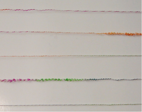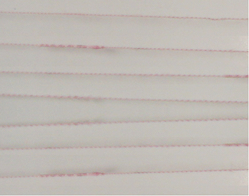 如按照以下工藝參數(shù):干定量為7.567g/100m;設(shè)計(jì)捻度為453捻/m;紡杯速度為65000r/min;分梳速度為7800r/min。可紡出單紗斷裂強(qiáng)度為11.2cN/tex;單強(qiáng)CV%為7.6%;質(zhì)量CV%為0.7%;基紗線密度72.9tex;粗節(jié)倍數(shù)1-8倍;竹節(jié)長(zhǎng)度在12-16cm之間;竹節(jié)間隔在55-75cm之間的82.2tex轉(zhuǎn)杯竹節(jié)花式紗。