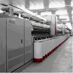 BT904轉(zhuǎn)杯紡紗機(jī)生產(chǎn)的ROTONA彈力包芯紗,可以用于襪類織物、游泳衣、運(yùn)動衣、內(nèi)衣、系帶類及裝飾織物。這種轉(zhuǎn)杯復(fù)合紗的生產(chǎn)同樣具有轉(zhuǎn)杯紡紗的優(yōu)點(diǎn),即工序短,速度、產(chǎn)量高,大卷裝,適紡原料廣,如棉、滌綸、粘膠等純紡和混紡,而且紗線結(jié)構(gòu)穩(wěn)定。